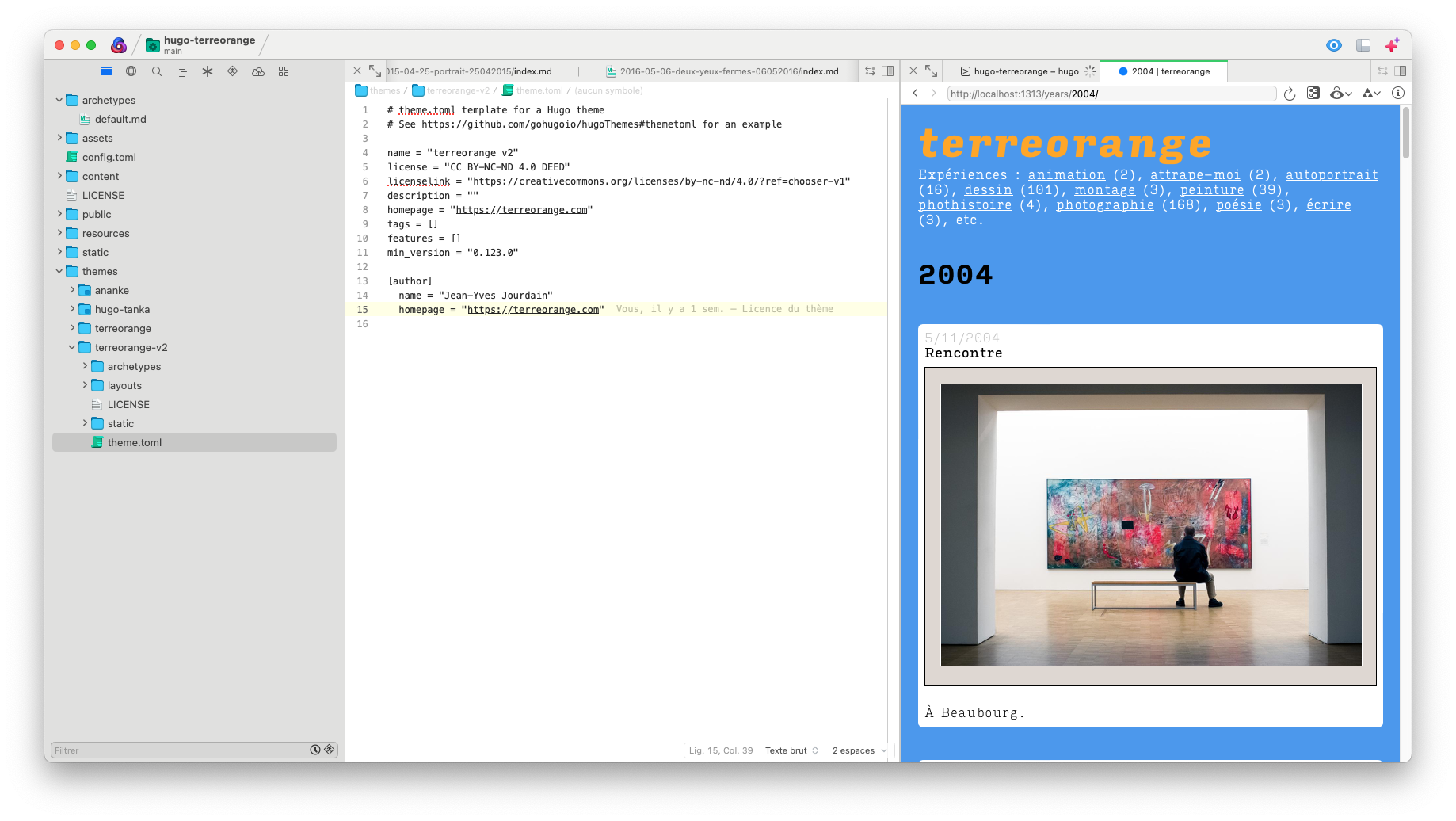 N.B. Mon but n’est pas d’expliquer ce qu’est Hugo ni comment cela fonctionne2, ni de détailler comment j’ai procédé, mais de décrire mon cheminement.